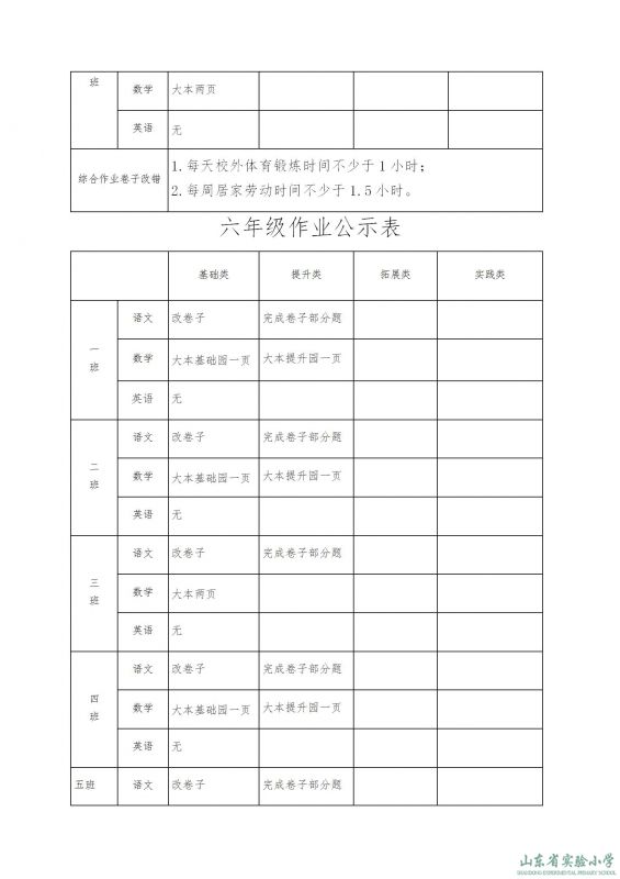 山东省实验小学机构设置