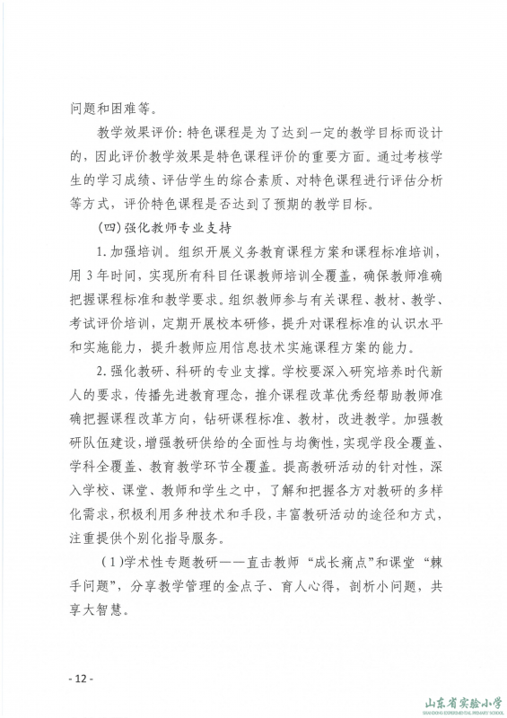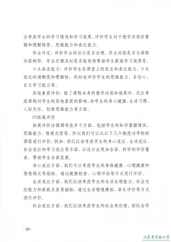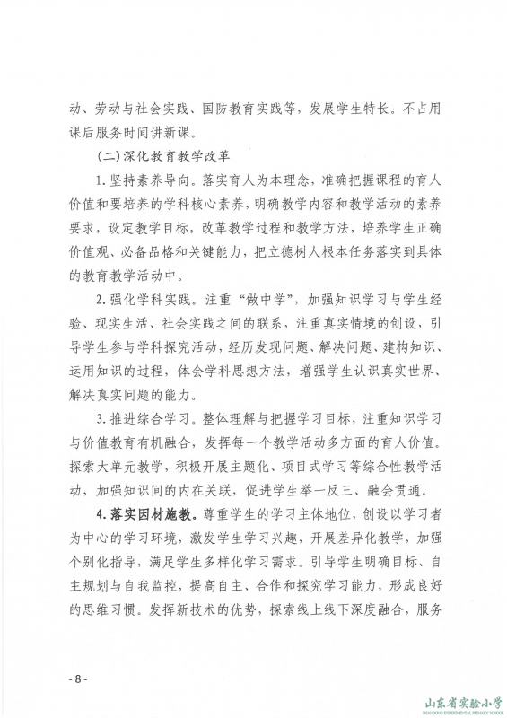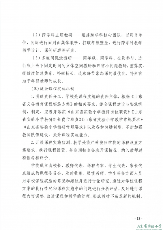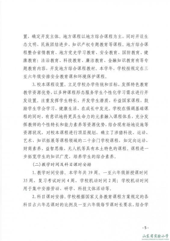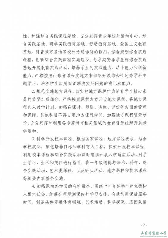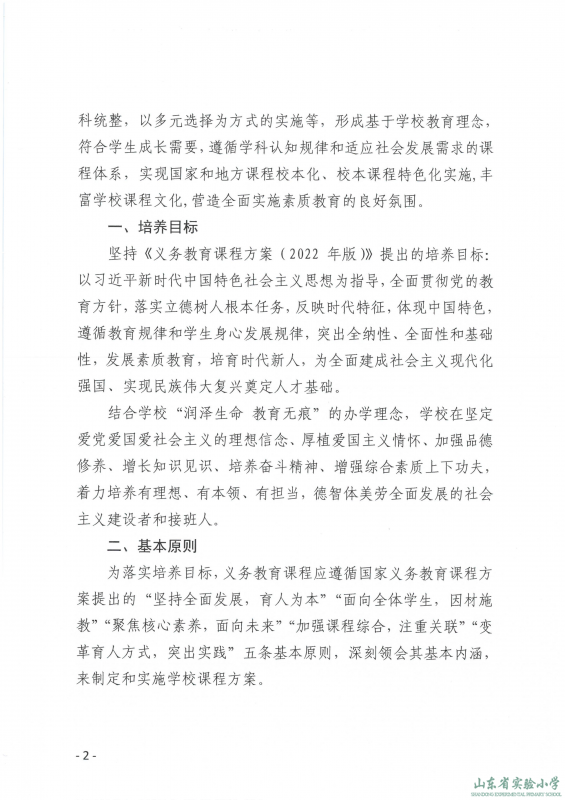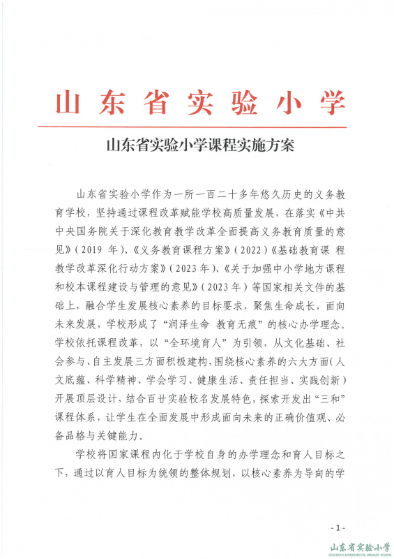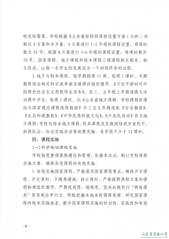 山东省实验小学课程实施方案