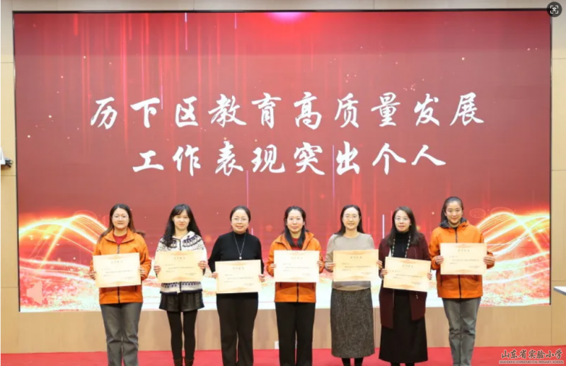 科研路上有探索,榜样身边有力量。论坛第二环节“见证榜样力量”中,学校为贺文清、苏艳华、杨舒雅、洒青悦、王天娇、白洁、彭媛七位“历下区教育高质量发展工作表现突出个人”举行颁奖仪式。领导为获奖教师颁奖,全场掌声雷动,既是对优秀教师辛勤付出的肯定,更激励着全体同仁以榜样为镜,砥砺前行。