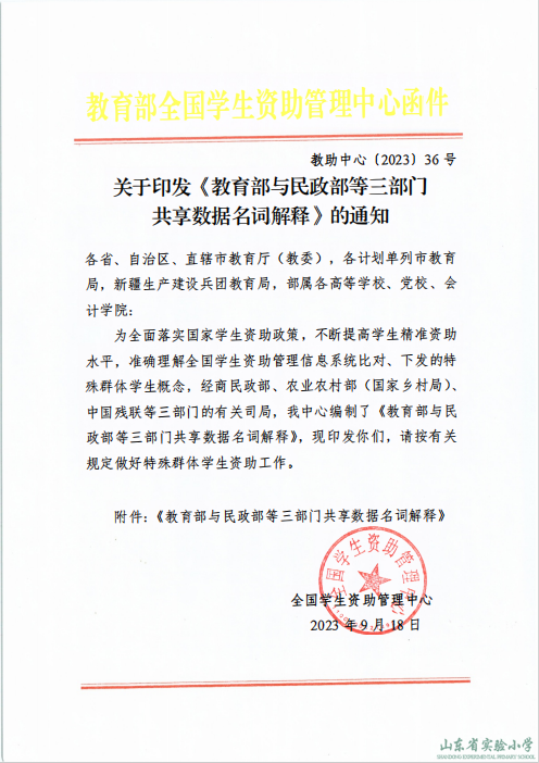 关于印发《教育部与民政部等三部门 共享数据名词解释》的通知