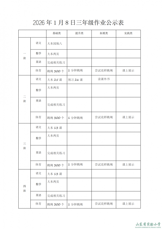 2026年1月4日作业公示