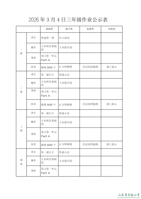 2026年3月4日作业公示