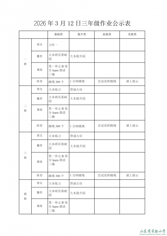 2026年3月12日作业公示