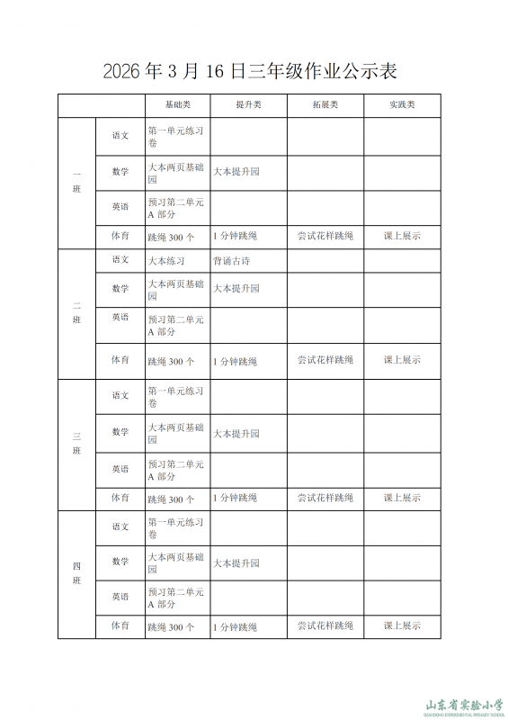 2026年3月16日作业公示