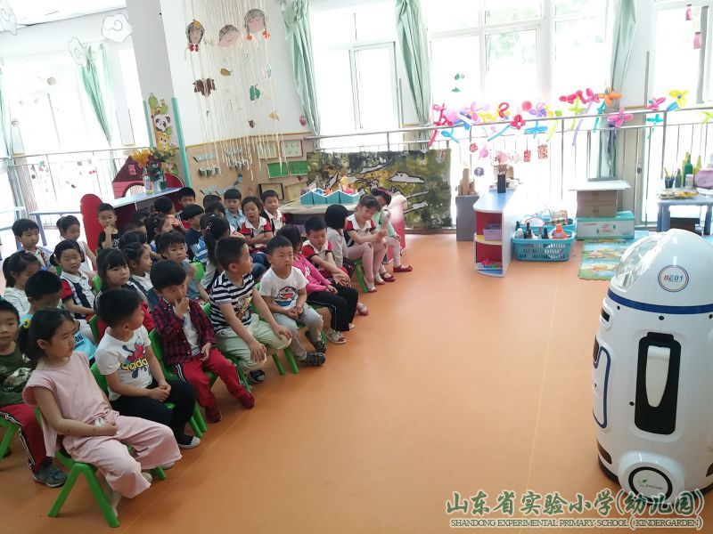 5月16日上午九点半,小胖机器人和操控人员来到了省实验幼儿园(南校区)中三班,与小朋友们亲密互动,给小朋友们带来高科技的新奇体验。