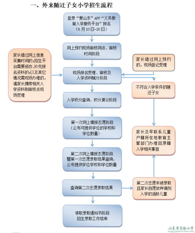 若按外来随迁子女报名,下一步还有入学资料现场审核预约、现场审核(赋分)、网上积分查询、网上志愿填报、网上录取结果查询等环节。请于7月上旬,通过历下区教体局官方网站(http://www.lixia.gov.cn/jyj/)和“历下教育”微信公众号查阅2025年历下区发布的中小学招生政策和招生指南,按照《2025年历下区外来随迁子女小学招生须知》中公布的时间安排,做好下一步的相关事宜,并随时保持在招生平台登记的手机通讯畅通。
