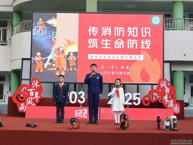 为进一步增强全校师生的消防安全意识,普及消防知识,筑牢生命安全防线,11 月 3 日,三(5)中队主持了以 “传消防知识 筑生命防线” 为主题的升旗仪式,带领全校师生走进消防、了解消防,呈上了一堂生动的消防安全 “必修课”。