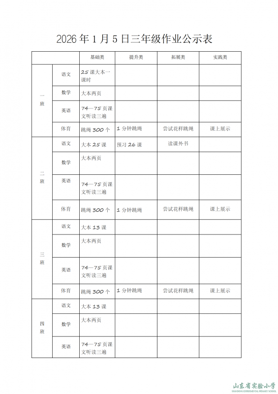 2026年1月4日作业公示