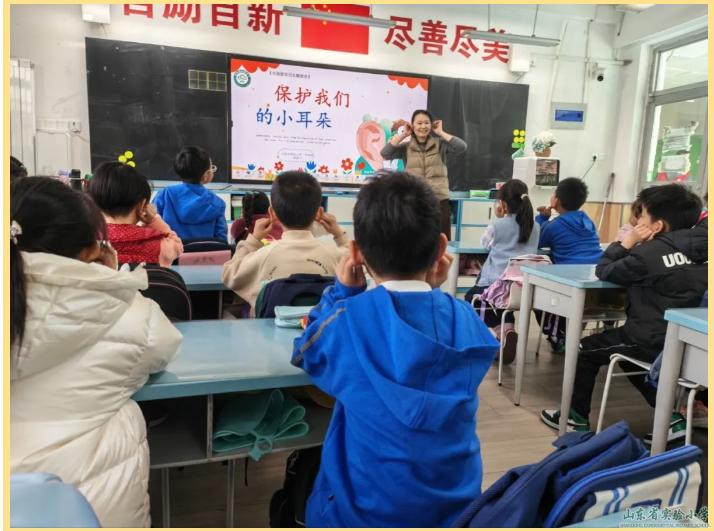 各班精心召开“爱耳护耳”主题班会,开启了听力健康的“启蒙课堂”。课堂上,老师们通过生动的动画视频、趣味科普小故事,用浅显易懂的语言向同学们讲解耳朵的构造、听力的重要性,以及日常用耳的常见误区——长时间佩戴耳机、频繁掏耳、在嘈杂环境中忽视听力保护等知识。通过互动问答、情景模拟等形式,同学们积极分享自己的用耳习惯,主动探讨“如何保护小耳朵”,在轻松愉悦的氛围中,树立了“爱耳护耳从我做起”的意识,筑牢了听力健康的思想根基。