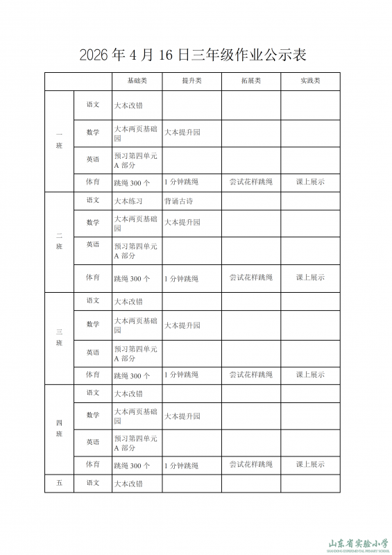 2026年4月16日作业公示